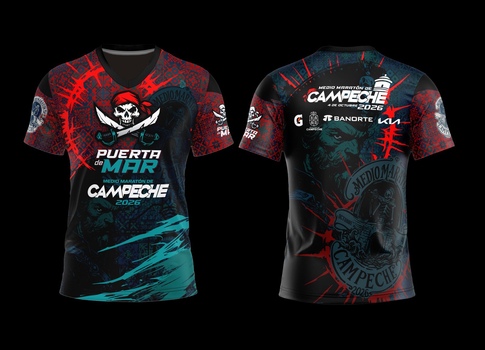 Con una de las mejores tecnologias textiles del sureste en una combinacion de telas que te permitira lucir esta playera conmemorativa que representa el espiruto de los piratas.